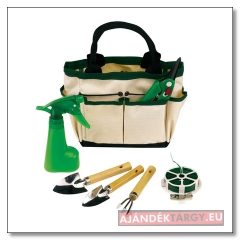 7 darabos kerti készlet , tartalma: gereblye, 2 lapát, metszőolló, drót és permetező, zsebes és megerősített fogantyújú vászonzsákban Méret: 18cm X 10cm X 19cm Rendelésre:5-10 nap! Szín: bézs, zöld Méret: 18 x 10 x 19 cm Nettó súly (kg): 0,444 Bru