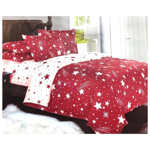 1 kép 7 részes PLÜSS ágyneműgarnitúra, hullócsillag mintás, piros HCS-P