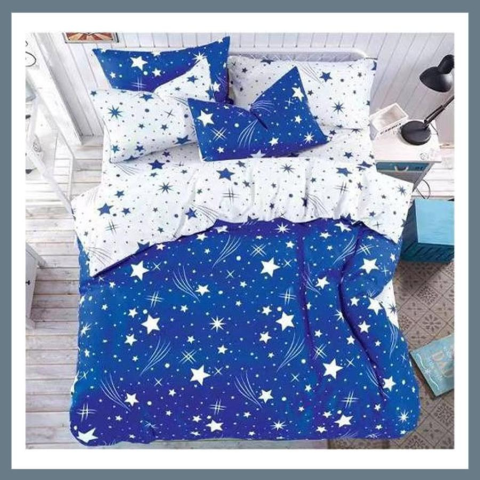Teljes 7 részes PLÜSS ágyneműgarnitúra, hullócsillag mintás, sötétkék HCS-S termékleírás