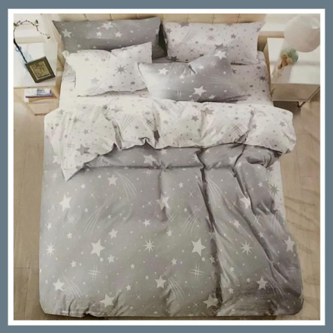 Teljes 7 részes PLÜSS ágyneműgarnitúra, hullócsillag mintás, szürke HCS-S3 termékleírás