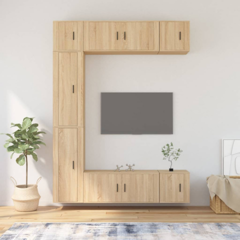Teljes 7 részes sonoma tölgyszínű szerelt fa TV-szekrényszett termékleírás