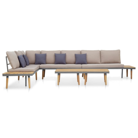 1 kép 7 személyes barna tömör akácfa kerti bútorgarnitúra párnákkal