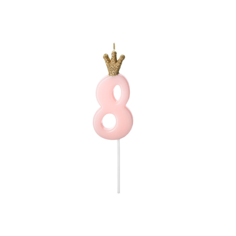 8-as számú születésnapi gyertya világos rózsaszín színben, mérete kb. 9,5 cm.