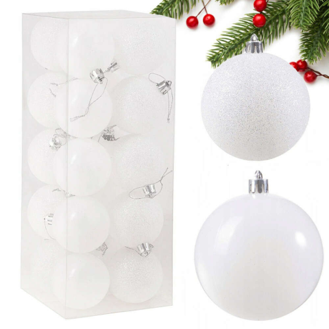 8 cm-es Karácsonyfadísz gömb készlet 20db, fehér karácsonyfadísz 1 kép