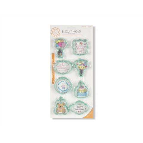 Ezzel a 8 db-os születésnapi formák műanyag süti kiszúró készlettel igazán mutatós kekszeket, mézeskalácsokat készíthetsz!