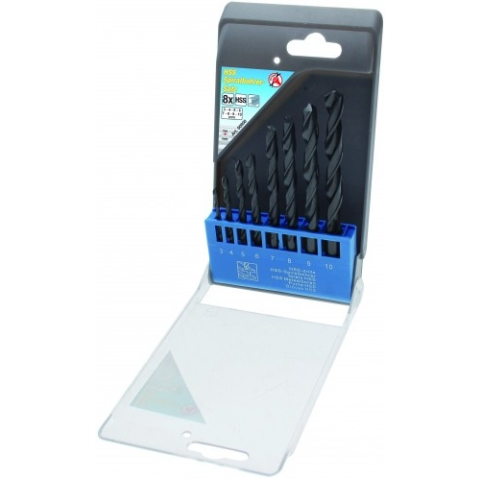 Gyorsacélból készül Felakasztható műanyag tartóban Fúrószár átmérők: 3, 4, 5, 6, 7, 8, 9, 10 mm