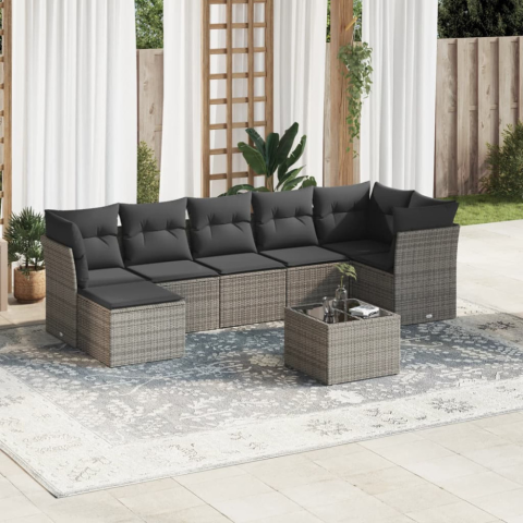 1 kép 8-részes szürke polyrattan kerti ülőgarnitúra párnákkal