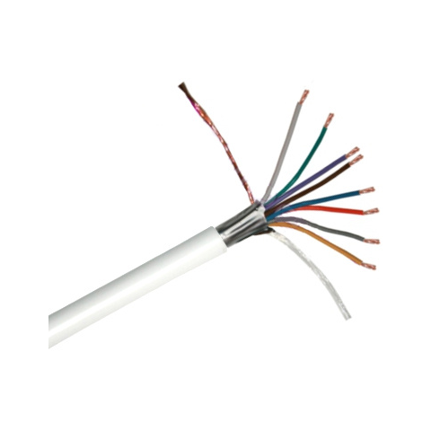 100 méter hosszú 8 x 0.22 eres biztonságtechnikai kábel PVC köpennyel	A kábel tulajdonságai			8 eres biztonságtechnikai kábel.			Rézzel bevont alumínium, sodrott, belső erek (CCA).			Belső erek: 7 x 0.20 mm (0.22 mm2).			HDPE érszigetelés.			Fehér színű PVC köpeny.			Alufólia árnyékolás.			Külső átmérő: 4.5 mm.			100 m / tekercs kiszerelés, fóliázva.