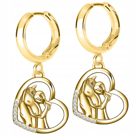 1 kép 925-ös ezüst arany fülbevaló, szív alakú lovak, ló lány, lovakkal