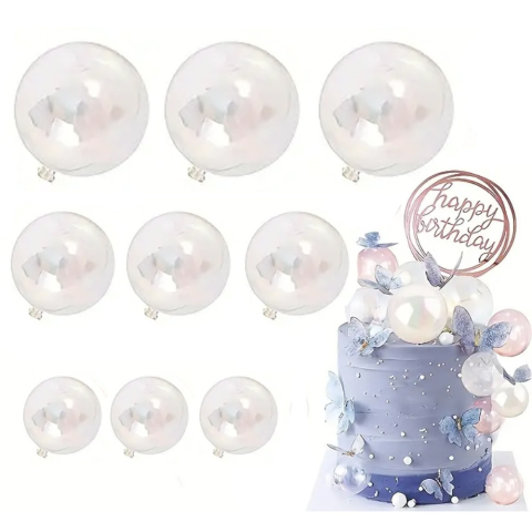 Tedd a tortáidat még különlegessebbé ezzel az átlátszó, 9 darabos műanyag dekorációs gömb szettel! Ezek a stílusos és sokoldalú gömbök tökéletesek bármilyen torta díszítéséhez, legyen szó születésnapról, esküvőről, évfordulóról vagy bármilyen más ünnepi