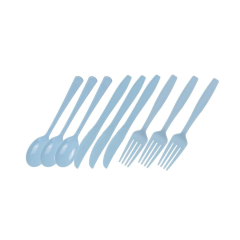 Összesen 9 darab evőeszközt tartalmaz. 3 db villát, 3 db kanalat és 3 db kést.