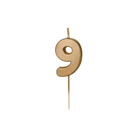 9-es számú születésnapi gyertya arany színben, mérete kb. 5,5 cm, keverjük össze