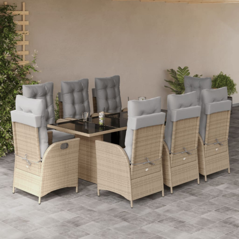 Teljes 9 részes vegyes bézs polyrattan kerti étkezőgarnitúra párnákkal termékleírás