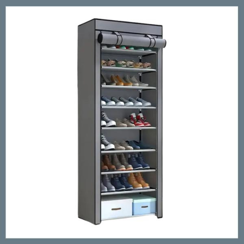Teljes 9 szintes cipőtároló szekrény lehajtható takaróval – szürke JY638049-3 termékleírás