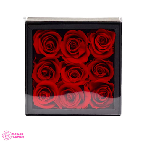 1 kép 9 Vörös Tartósított Rózsa Négyzet alakú Dobozban