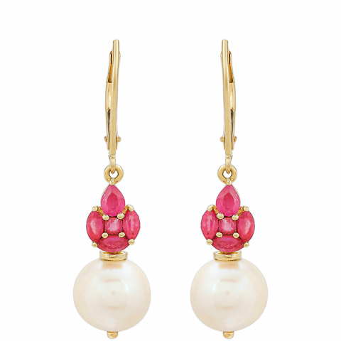 1 kép 9K Arany Fülbevaló Thai Rubinnal és Édesvízi Gyönggyel