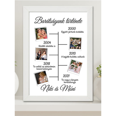 A3 falikép barátoknak, barátságunk története. Személyre szabható barátságunk története A3 falikép, amely tökéletes ajándék legjobb barátod vagy barátnőd, születésnapjára, névnapjára vagy különleges alkalmakra. Közös történetetek legfontosabb pillanatait k