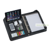 Kiváló minőségű bőrrostokból készült A4-es aktatáska mappa, cipzárral, zsebekkel, névjegykártyatartóval, tolltartó pánttal, okostelefon zsebbel és -tartóval, gyűrűs mechanizmussal, valamint nyomtatott naptár részes, vonalas jegyzettömbbel. Méret: 28 × 36,