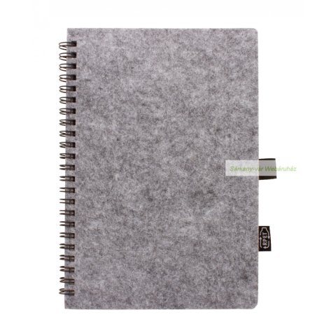 RPET filc borítású spirál jegyzetfüzet, megkülönböztető RPET címkével és 80, újrahasznosított papírból készült vonalas lappal. A5 méretű. Méret: 144×212×8 mm Szín: szürke Anyagok: Újrahasznosított PET / Újrahasznosított papír Rendelésre: 3-10 nap! A dek