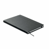A5 jegyzetfüzet, 60% fogyasztás utáni újrahasznosított poliészter és 40% PU borítóval. Cérnafűzött. 256 vonalas oldal (128 lap) 70 g/m² újrahasznosított papírból. 2 poliészter könyvjelző szalaggal.