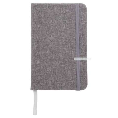 Textil hatású műbőr borítású jegyzetfüzet 80 vonalas lappal, gumipánttal zárható. A6 méretű. Emblémázási max. méret:100mm x 50mm Rendelésre: 3-10 nap!