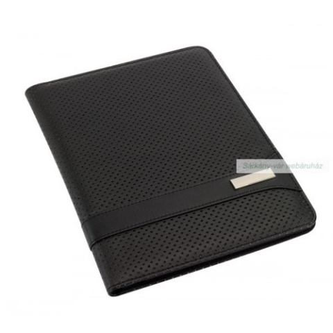 Elegáns mappa , DIN A4-es méret: különféle becsúsztatós zsebekkel a belsejében, 1 db patenttel zárható kis zseb, rugalmas pántok powerbankhez, egyéb eszközhöz, jegyzettömbbel, tolltartó pánt. Külsején nyomott lyukacsos dizájn, fém lappal az emblémája szá