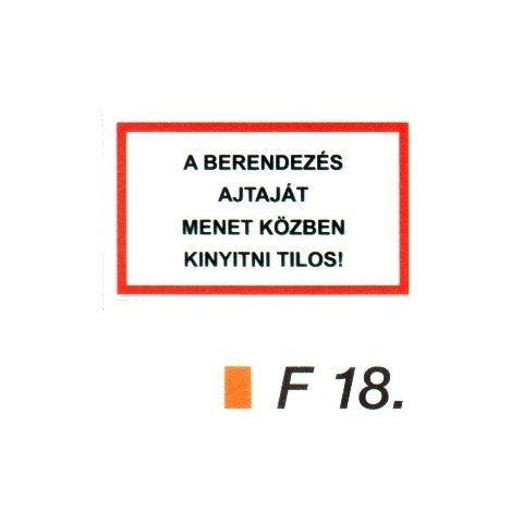1 kép A berendezés ajtaját menet közben kinyitni tilos! F18