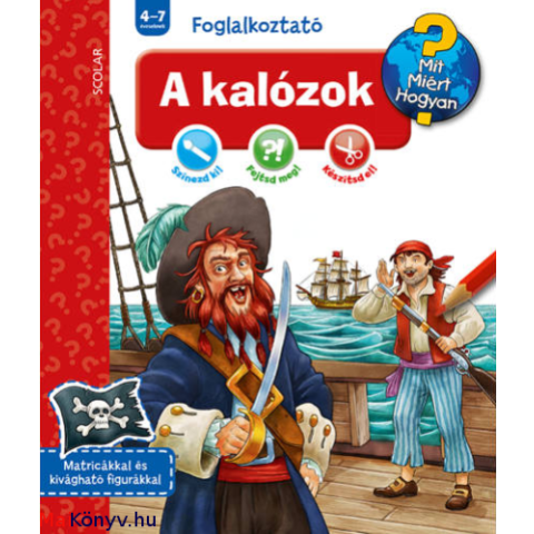 A Ravensburger Mit? Miért? Hogyan? Foglalkoztató sorozatának e kötete a kalózokkal ismerteti meg az apróságokat. Kik voltak a kalózok, milyen volt az élet a kalózhajón, hogyan öltözködtek a kalózok és mit csináltak a zsákmánnyal? A foglakoztató játékos fe