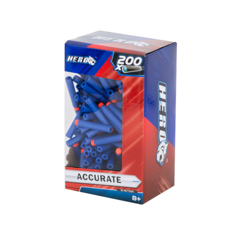 A NERF kilövővel kompatibilis nyilak készlete. Illeszkedik a legtöbb lágynyílású puskához. Habszerű műanyagból készült. A készlet tartalmazza: 200 golyó. Szín: kék-narancs. Nyíl hossza: 7 cm. Nyíl átmérője: 1,2 cm