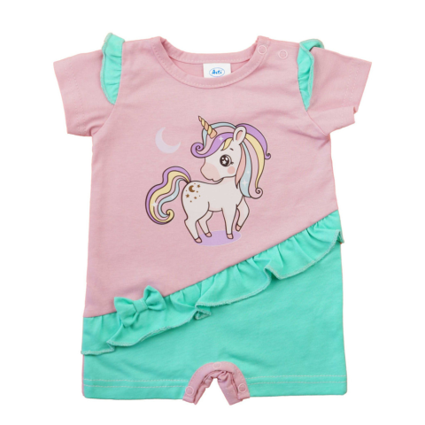 A Rövid ujjú kislány baba napozó - unikornis mintával Ellenállhatatlanul cuki ez a baba napozó, mely minőségi bababarát pamut anyagból készült, ami enyhén rugalmas, így kényelmes viseletet biztosít kisbabánknak akár egész napra. A napozó elejét kedves min