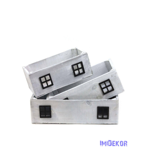 1 kép Ablakos fa láda szett 3db-os A - Szürke