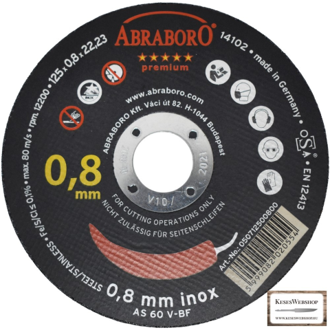 ABRABORO® Chili INOX GOLD EDITION 125 x 0.8 x 22mm vágókorong Flex korong 125mm minden szabvány sarokcsiszolóhoz, mleybe 125mm korong való. Furat átmérő: 22mm Minden típusú acél vágásához alkalmas: szénacélok, rozsdamentes acélok