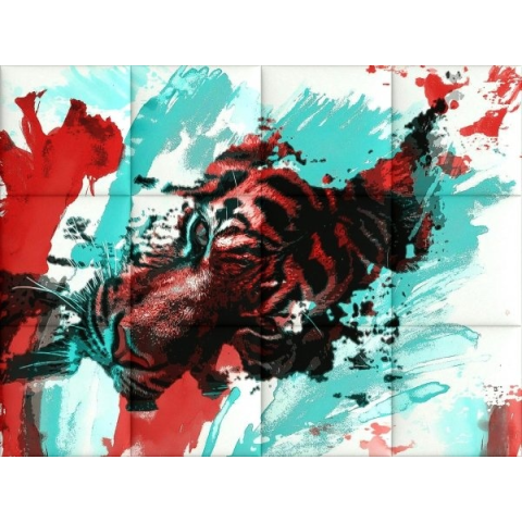 A dekoráció 25×25 cm méretű nyomtatott falpanelekből áll