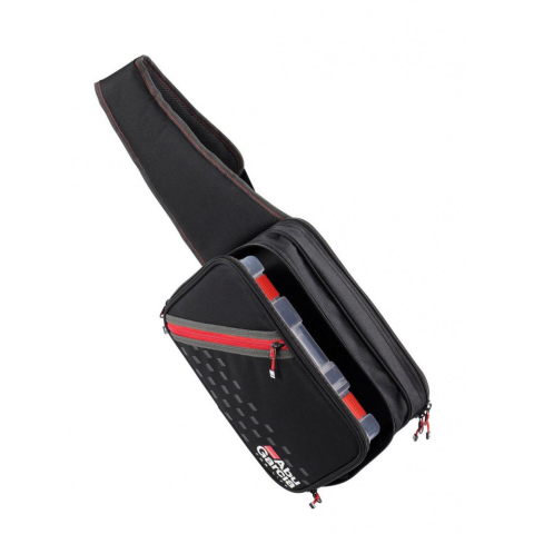 Az Abu Garcia japán piacra tervezett praktikus pergető övtáskája dobozokkal. A Sling Bag egy közepesen kompakt táska, amely 2 üres (közepes) felszerelési dobozt tartalmaz. Van egy elülső zsebe a fogó/olló számára, valamint egy belső hálós zseb cipzárral a