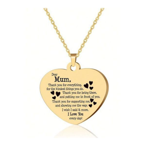 Aranyozott acél szív alakú medál megható felirattal édesanyáknak. Időtálló, elegáns nyaklánc, amely tökéletes ajándék bármilyen különleges alkalomra