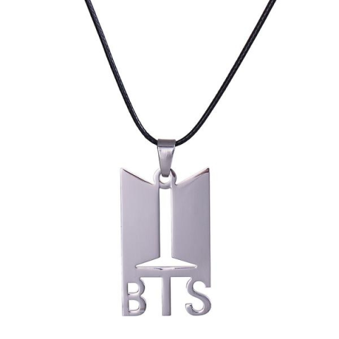 Stílusos BTS nyaklánc acél medállal és állítható bőrszíjjal. Tökéletes ajándék minden kpop rajongónak