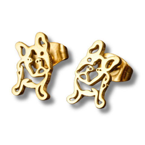 Apró bulldog motívumos, arany színű acél fülbevaló. Uniszex, kényelmes viselet, amely játékos és stílusos megjelenést kölcsönöz