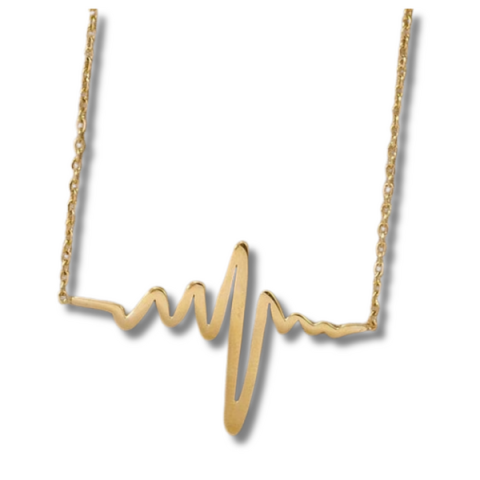 Elegáns aranyozott acél EKG nyaklánc állítható hosszúságú lánccal. Tökéletes ajándék egészségügyi dolgozóknak és különleges ékszerek kedvelőinek