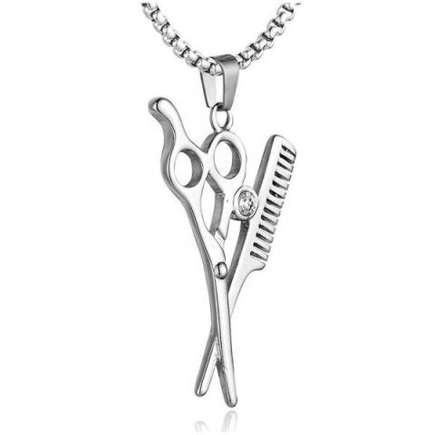 Stílusos acél fodrász nyaklánc olló és fésű medállal, tökéletes ajándék fodrászoknak. Minőségi kivitel, rozsdamentes acélból készült medál és lánc
