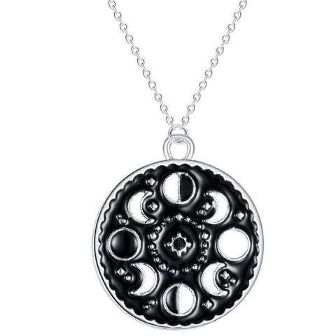 Fekete-ezüst acél nyaklánc, amely a Hold nyolc fázisát ábrázolja. Stílusos és különleges kiegészítő minden holdrajongónak