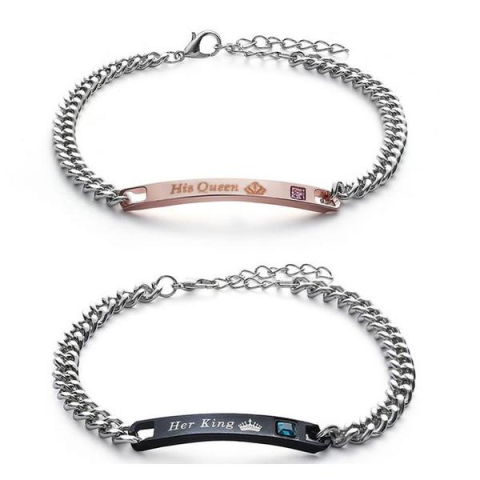 Acél King and Queen páros karkötő, romantikus ajándék szerelmeseknek. Állítható méret, rozsdamentes acél. Mutasd ki szerelmed ezzel a közös karkötővel