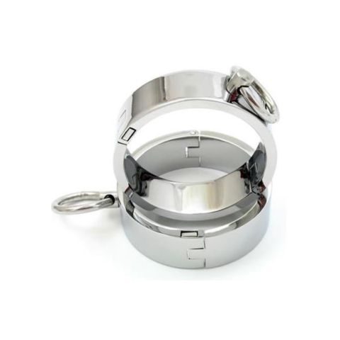 Acél láb bilincsek karikával.Rozsdamentes acélból-felpolírozva.Imbusz kulccsal nyitható(tartozék).Belső átmérő:9cm.Szélessége:2cm.1pár.Karabíner külön vásárolandó ha szükséges(Sado-mazo kellékek/egyéb).