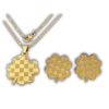 Aranyozott acél lóhere nyaklánc és fülbevaló szett, elegáns pepita mintával. Kiváló minőség, tartós csillogás és szerencsét hozó design