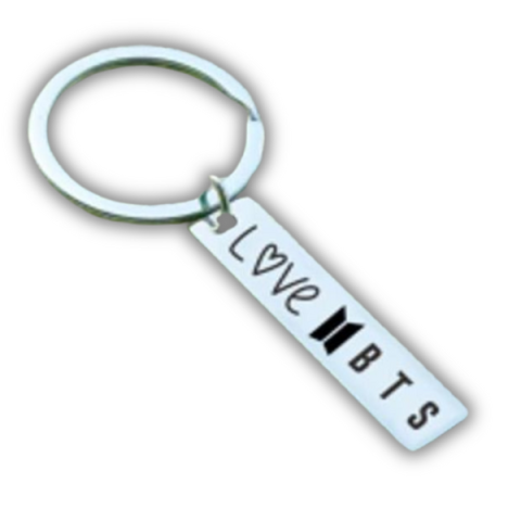 Elegáns Love BTS kulcstartó K-pop rajongóknak. Kiváló minőségű acél medál BTS logóval, tökéletes ajándék minden BTS és K-pop kedvelő számára