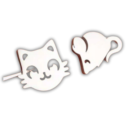 Macska-egér páros fülbevaló sebészeti acélból. Stílusos, beszúrós ékszer mindennapi viseletre. Kiváló minőségű, tartós és allergiamentes