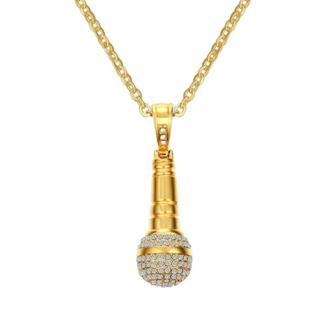 Stílusos mikrofon medálos nyaklánc strasszkövekkel, rozsdamentes acélból. Tökéletes ajándék énekeseknek és zenészeknek