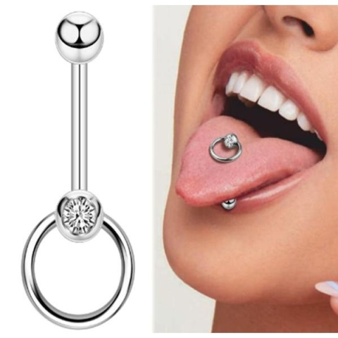 Csillogó strasszköves acél nyelv piercing, polírozott felülettel. Tartós, higiénikus, kényelmes viselet mindennapokra és alkalmakra, uniszex kialakításban