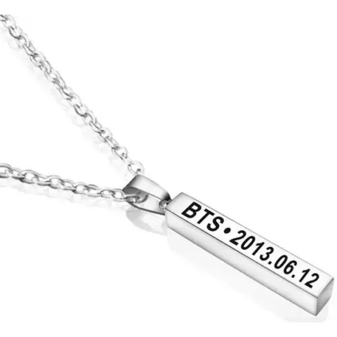 Ez a BTS acél nyaklánc tégla alakú medállal és a debütálási dátummal gravírozva tökéletes ajándék minden BTS rajongónak