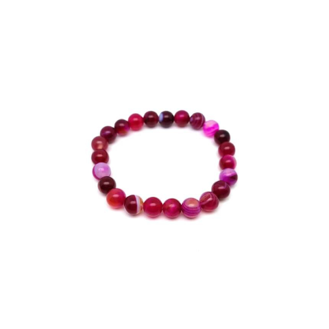 Achát szinezett mályva sávos golyó karkötő 8mm