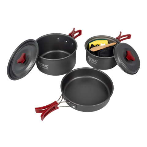 Kemping főzőedénykészlet, ételkészítés akár 3 fő részére, összecsukható fogantyúk, kompakt kialakítás, tartós alumíniumötvözet és műanyag, egyenletes melegítés. Sátor alatt vagy kempingben szeretne időt tölteni? Könnyítse meg az ételkészítést, és szere